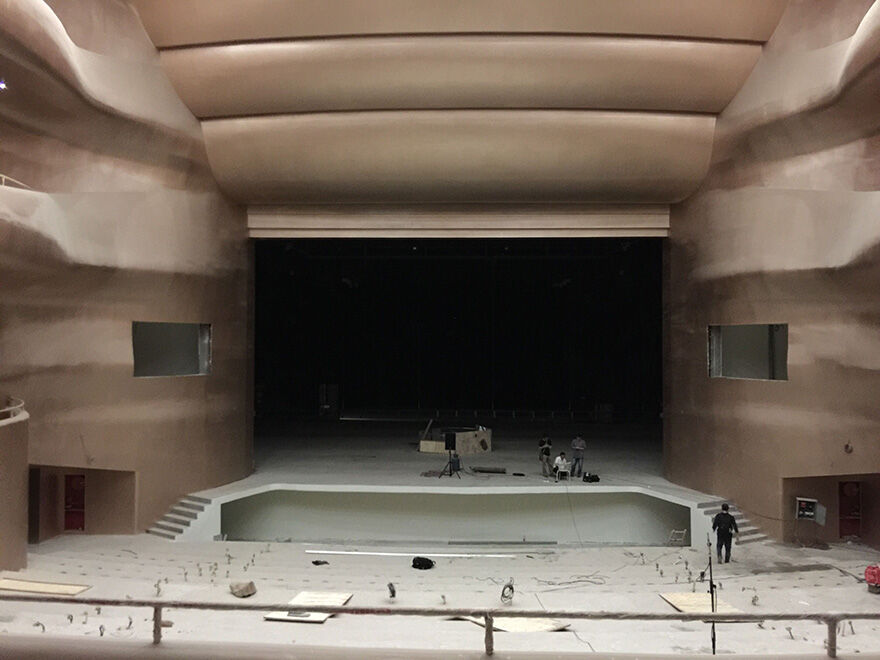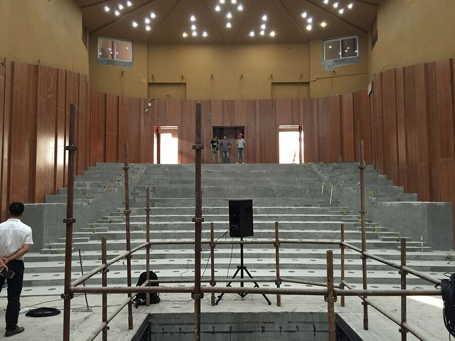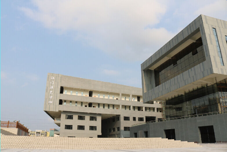 江门演艺蝴蝶视频污污在线坐落在江门市有“尖沙咀”之称的良化围,依山傍水,东靠白水带山脉,西临蓬江河,是由五个独立建筑组成群落的大型文化演艺设施,占地面积41330平方米,总建筑面积约6万平方米,总投资4亿元,是江门市重点项目,多次获得省、市领导的高度评价,并获得了省、市文化产业发展专项资金的扶持。项目将在2016年5月投入运营。演艺蝴蝶视频污污在线主建筑综合性剧院和专业音乐厅的建筑声学、蝴蝶成人午夜视视频机械、灯光音响由国内知名设计公司负责工艺设计,供大型音乐、舞蹈、戏曲和小型剧目演出以及会议、活动使用。剧院总面积19000平方米,设1200个座位;专业音乐厅采用纯建声设计,设260个座位,能满足专业音乐厅声学要求。号称中国版”金色大厅”的金色大剧院造型观众区采用三重叠层式设计,设座位