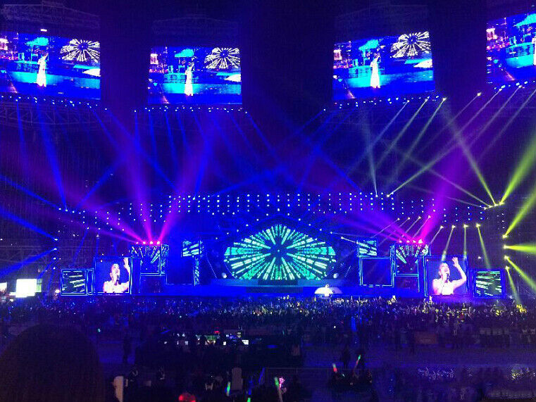 主扩音箱采用L-Acoustics V-DOSC双十五寸线阵列音箱和L-Acoustics dV-DOSC双八寸线阵列音箱组成,前区补声采用L-Acoustics dV-DOSC双八寸线阵列音箱,侧面补声采用L-acoustics KUDO双十二寸线阵列音箱,超低音箱采用L-Acoustics SB218 双十八寸超低音箱,蝴蝶成人午夜视视频返送由L-acoustics的蝴蝶成人午夜视视频返送专家115XT HiQ十五寸同轴音箱当担。调音台选用日本YAMAHA数字调音台P5MD为乐队服务和歌手服务,以达到完善的听觉享受。