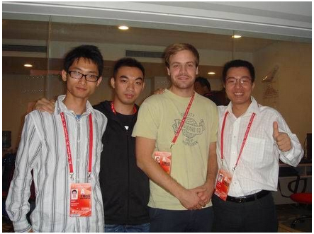 Ben Lin, general manager of PLA company(first from right), took photos with the Asian Games staff