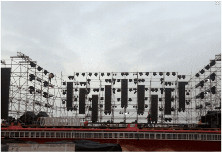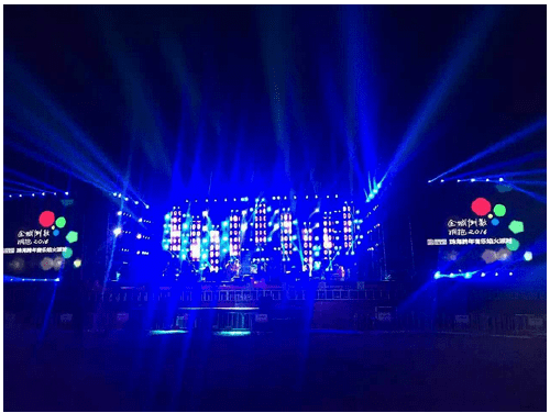 units computer beam lights and computer graphic lights. There are outdoor ultra-high-definition LED screens on both sides of the stage. The main stage has 9 wavy LED screens, which reflect the three-dimensional, shocking and superb beauty of the stage, greatly enhancing the viewing and visual impact of the overall performance. Sex, creating an atmosphere, will bring a visual feast to the audience. The beautiful stage is illuminated by the colorful lights, and the large LED screens on both sides put the singer's hands up and the effect is very shocking.