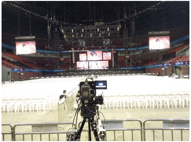 The stage monitor speaker is composed of L-ACOUSTICS V-DOSCand L-ACOUSTICS dV-DOSC.