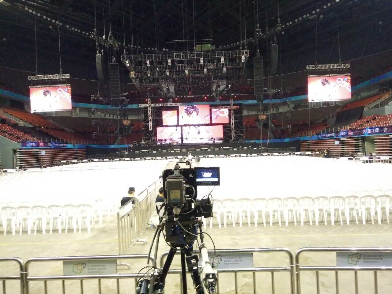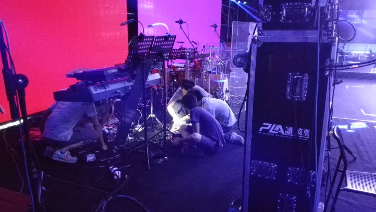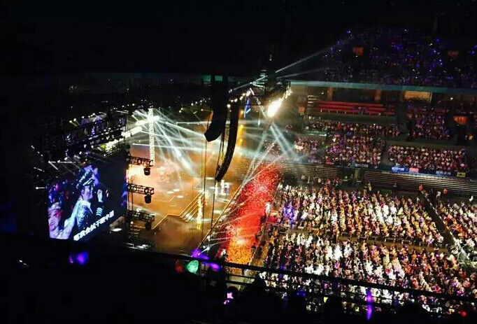 主扩音箱采用了L-ACOUSTICS V-DOSC双十五寸线阵列音箱和L-ACOUSTICS dV-DOSC双八寸线阵列音箱组成。