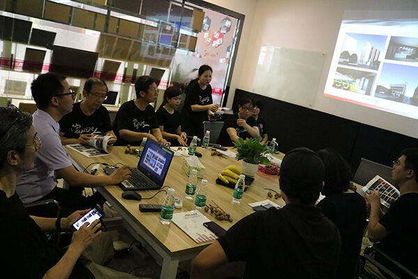 一行专家及领导于会议室观看公司案例作品,畅谈经验,并根据公司现状和发展,提出宝贵意见。