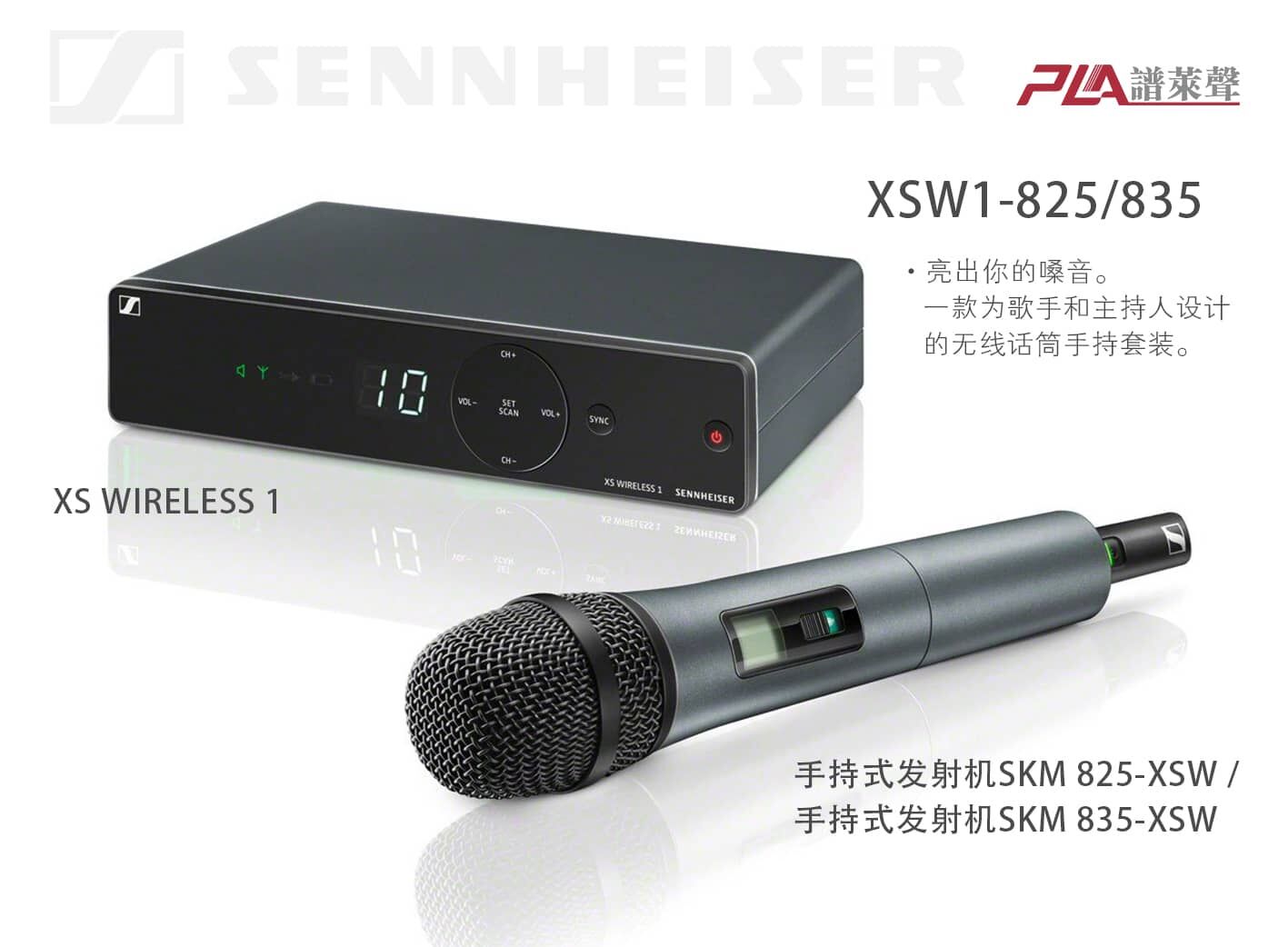 XS WIRELESS 1手持套装是完整的无线系统,专为歌手与演讲者设计,适合现场演出。手持话筒配备Sennheiser闻名的evolution系列e825话筒头(动圈,心形),适合作为起步选择。